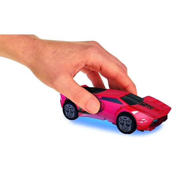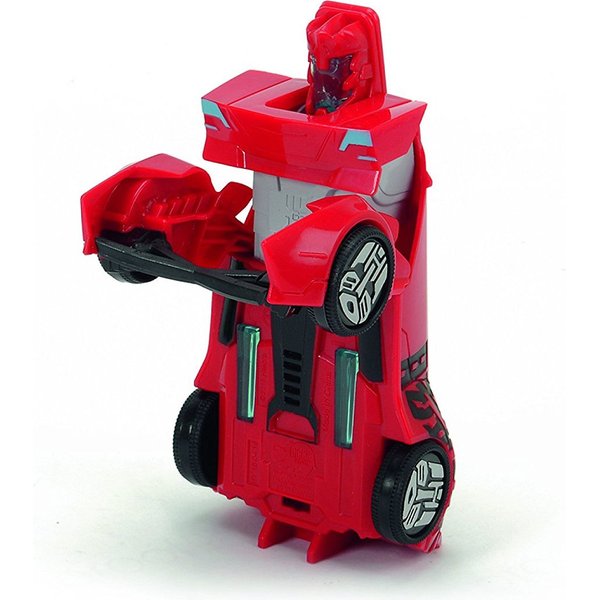 Sideswipe z robota może zamienić się w super szybki samochód. By zabawa była jeszcze ciekawsza pojazd został wyposażony w efekty świetlne i dźwiękowe. Naciśnij przycisk i patrz jak podświetla się podwozie, a pojazd aktywuje dźwięk silnika.