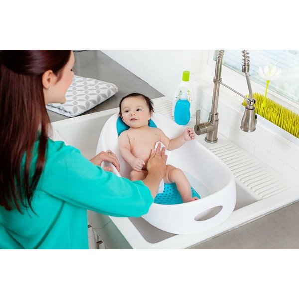 Wanienka marki Boon przeznaczona jest dla dzieci od noworodka aż po małe dziecko.Posiada regulowaną wypukłość oraz wyprofilowane plecy, które są pokryte miękką, antypoślizgową pianką - dzięki temu wanienka dopasowuje się do malucha aż do 18 miesiąca życia. Dodatkowym, przydatnym gadżetem jest korek, który zmienia kolor pod wpływem temperatury wody.