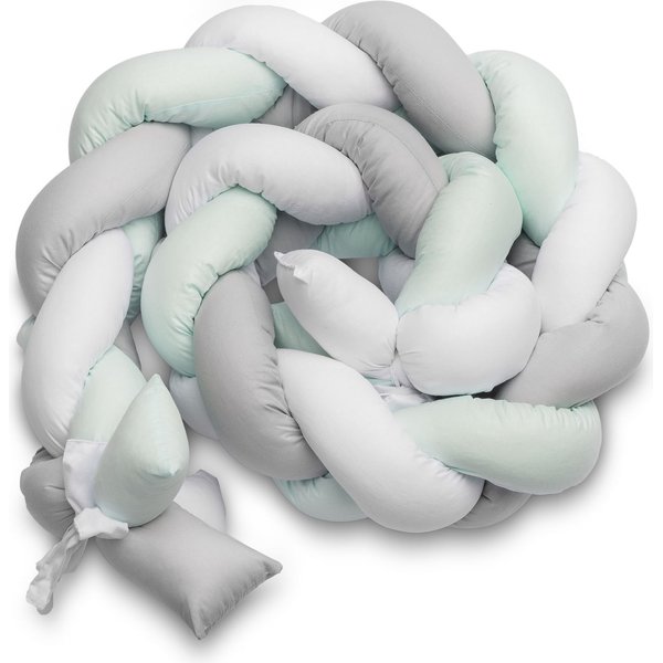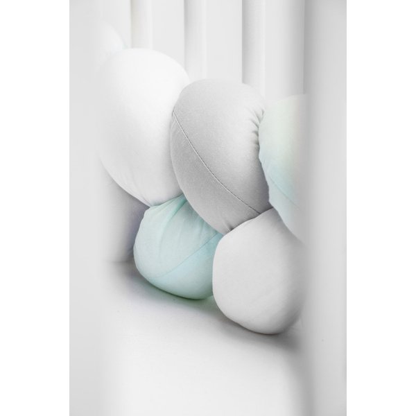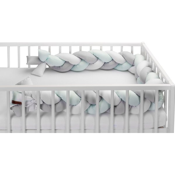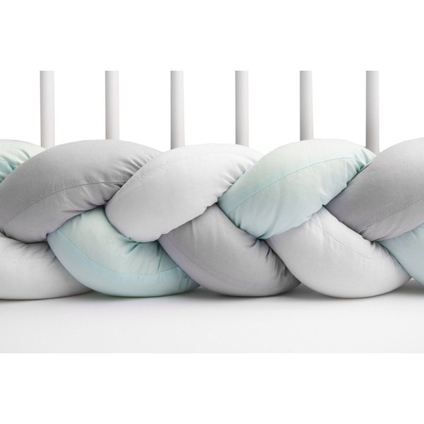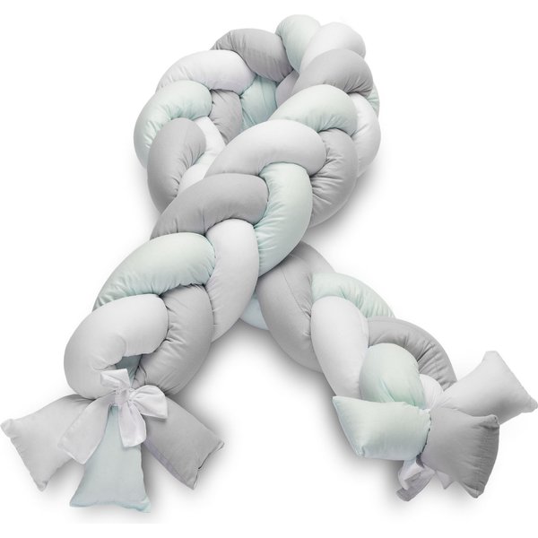 Ochraniacz do łóżeczka w postaci pięknego warkocza został wykonany z najwyższej jakości bawełny, a jego wypełnienie to antyalergiczne kulki silikonowe. Rodzice nie będą musieli martwić o przypadkowe zderzenia ich dziecka z twardymi barierkami łóżka. Mocowanie jest bardzo proste i bezpieczne - na każdym końcu znajdują się wstążki, służące do mocowania warkocza do łóżeczka.
