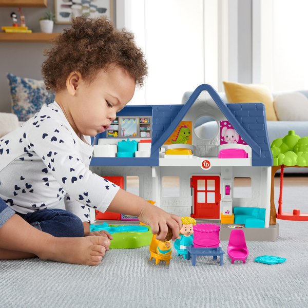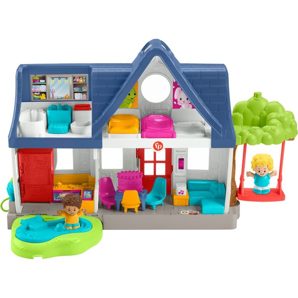 Maluch może swobodnie bawić się domkiem, odtwarzając różne codzienne scenki i wymyślając własne historyjki. Do dyspozycji dziecka są 2 małe figurki przyjaciół i 6 punktów aktywacji (np. podświetlane radio, przełącznik światła, mały tablet w kuchni, lodówka, piecyk i toaleta z dźwiękiem spuszczaniem wody). Treści edukacyjne podzielone zostały na 3 poziomy nauki do odkrycia przez malucha: literki, cyferki, kolory i inne ciekawe treści - piosenki, dźwięki, melodyjki. Kreatywne opowieści rozwijają wyobraźnię dziecka, a mnóstwo ciekawych elementów zabawki zachęca do dotykania i poznawania.
