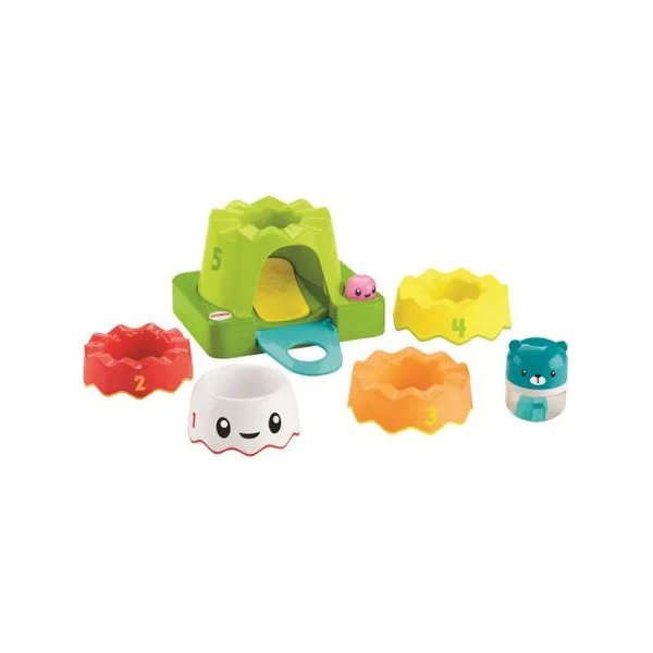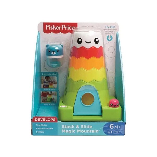 Wieża, układanka od Fisher Price teraz w nowym wydaniu! Układając wszystkie elementy na swoje miejsce powstanie kolorowa zjeżdżalnia dla uroczego misia. Gdy maluch popchnie go na dół, uaktywnią się efekty świetlne i dźwiękowe, które przyciągną uwagę dziecka. Można je uruchomić również za pomocą fioletowego przyjaciela, który towarzyszy pluszakowi. Dzięki tej piramidce niemowlę będzie mogło ćwiczyć swoją koordynacje i zdolności manualne, a przy okazji rozpocząć przygodę z kolorami i liczbami. Zabawka wykonana została z materiałów wysokiej jakości.