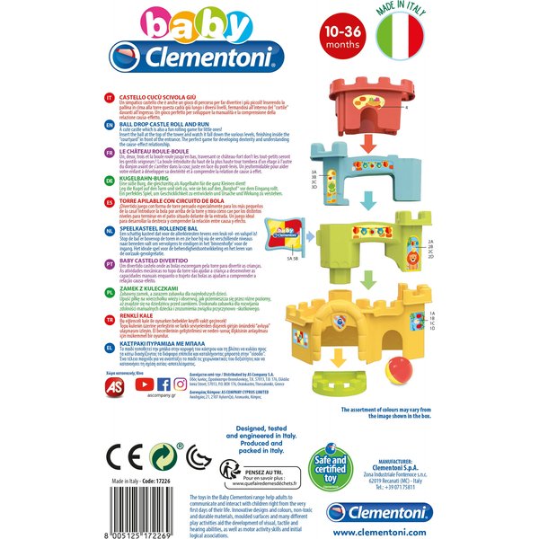 Wieża z kuleczkami od Clementoni stworzona z myślą o najmłodszych! Maluch będzie mógł obserwować jak piłeczka porusza się po zamkowym torze! Pałac składa się z 4 części, które wcześniej trzeba złożyć. Dziecko może, więc trenować swoje zdolności manualne przy okazji zabawy. Każdy element posiada inny kolor, co pozwoli maluszkowi przyswoić sobie ich nazwy. Wieża idealnie sprawdzi się jako prezent na urodziny. Można nią się bawić również na wiele innych sposobów, a ograniczeniem jest tylko nasza wyobraźnia.