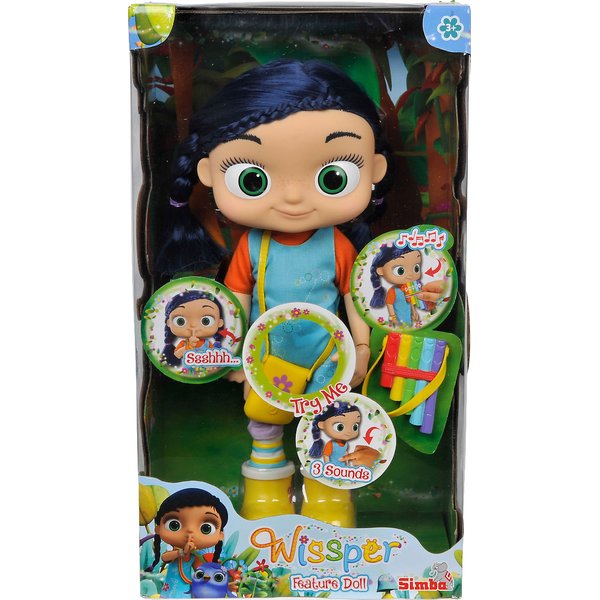 Lalka ubrana jest w charakterystyczną sukieneczkę na ramieniu nosi żółtą torebkę ponadto posiada kolorowy instrument muzyczny. Wissper naprawdę mówi! Wystarczy przycisnąć jej brzuszek by usłyszeć co Wissper ma do powiedzenia. Lalka posiada ruchome kończyny, dzięki czemu zabawa stanie się ciekawsza.