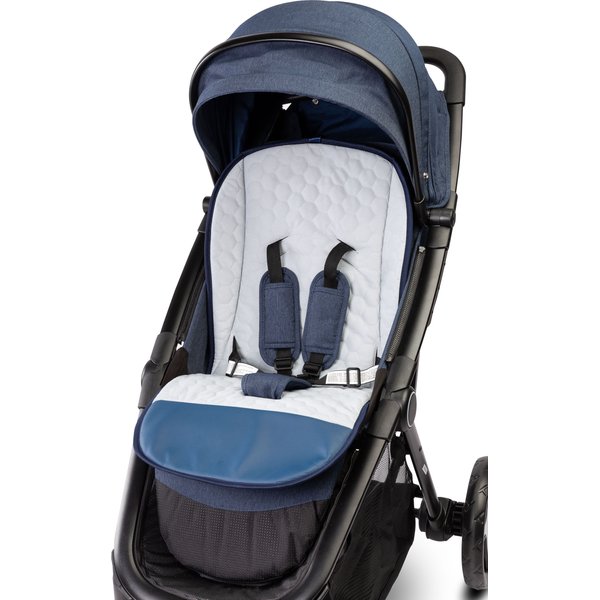 Miękka wkładka dla dzieci z wodoodpornym podnóżkiem poprawi komfort twojego malucha podczas jazdy wózkiem, a ponadto doda mu niesamowicie oryginalnego stylu. Specjalnie wyprofilowany kształt zapewni, że prawidłową dopasuje się do wózeczka. Wkładka jest dwustronna, posiada otwory pasy - pasuje do większości wózków spacerowych.