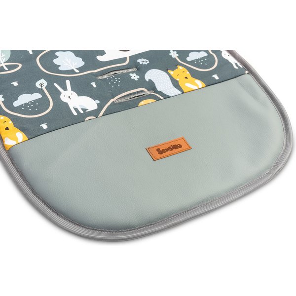 Miękka wkładka do wózka z wodoodpornym podnóżkiem poprawi komfort twojego malucha podczas jazdy wózkiem, a ponadto doda mu niesamowicie oryginalnego stylu. Specjalnie wyprofilowany kształt zapewni, że prawidłową dopasuje się do wózeczka. Wkładka jest dwustronna. Z jednej strony gładka bawełna ze wzorem, z drugiej strony materiało strukturze wafla. Posiada otwory na pasy co sprawia, że idealnie pasuje do większości wózków spacerowych. Pozwala utrzymać wózek w czystości i zapewni komfort podczas spacerów.