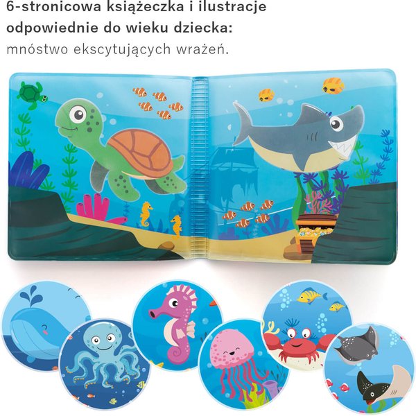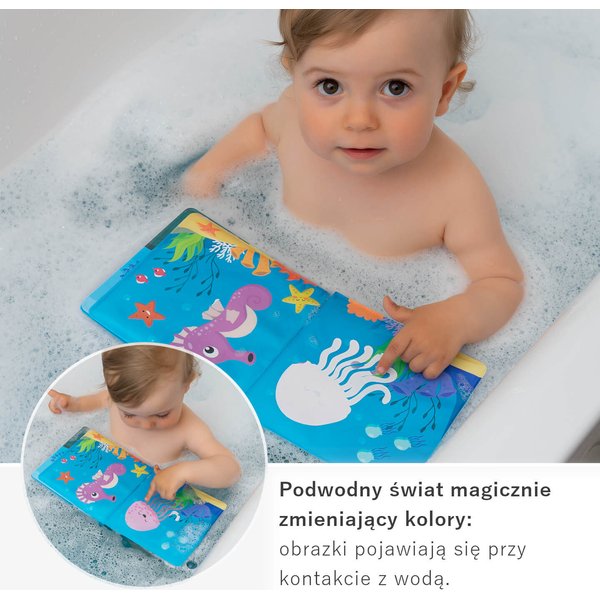 Model ten kryje w sobie piszczącą folię i obrazki, które maluszek może zobaczyć tylko po zanurzeniu książeczki w wodzie. Sensoryczna książeczka oddziałuje na wszystkie zmysły maluszka, pozytywnie wspierając ich rozwój oraz zdolności manualne. Wykonana została z przyjemnego w dotyku, miękkiego ale wytrzymałego materiału o właściwościach wodoodpornych.