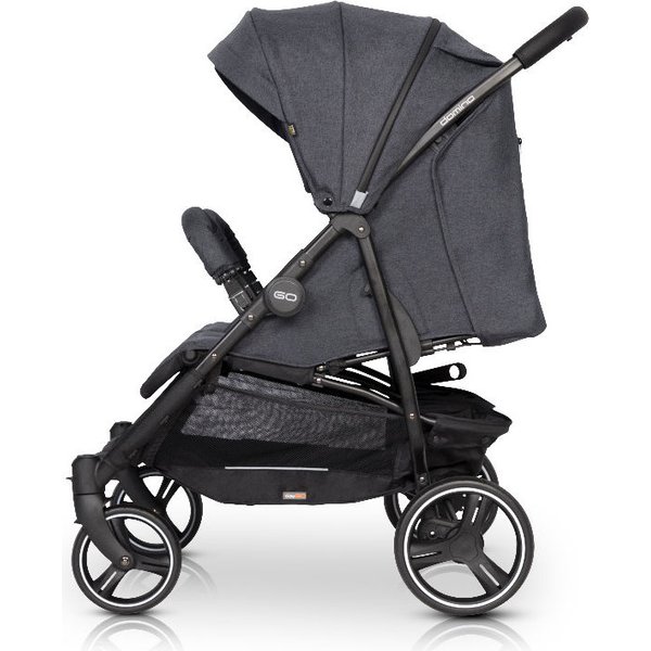 Wózek spacerowy Domino od EasyGo to dwa razy więcej radości ze spacerów. Umożliwia on spacer bliźniakom. Jednak możliwość dokupienia do niego miękkiej gondoli sprawia, że nie tylko możemy go zacząć użytkować już od pierwszych dni życia, ale można go również zamienić w wózek rok po roku. Fakt, że jest on przeznaczony dla dwójki dzieci nie oznacza, że jest ciężki w prowadzeniu! Jest on niezwykle lekki, a mało tego ... prowadzi się go łatwiej niż niektóre wózki dla jednego dziecka. Bezdętkowe koła z poliuretanu zapewnią odpowiednią amortyzację, niezależnie od nawierzchni. Są one również odporne na ścieranie.