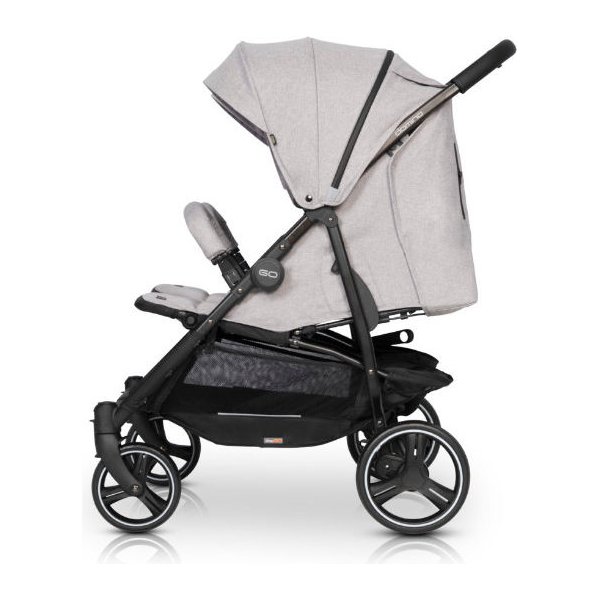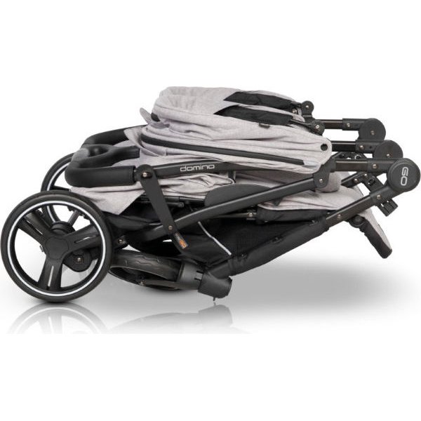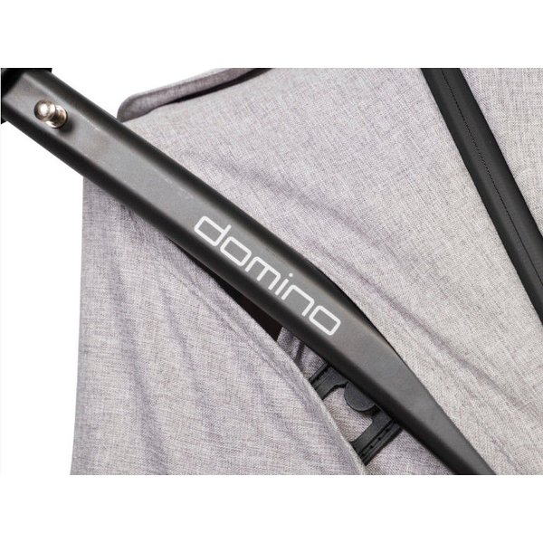 Wózek Domino został zaprojektowany tak, aby był wygodny, bezpieczny, a użytkowanie go nie przynosiło większych problemów. Jego szerokość to 72 cm, co z pewnością jest zaletą ponieważ zmieści się on w drzwiach. Bezpieczeństwo zapewnią 5 punktowe pasy oraz pałąk, a specjalny stopień dla starszych dzieci ułatwi im samodzielne wsiadanie do wózka. Oparcie możemy wyregulować w5 stopniach, aż do pozycji leżącej, co pozwoli na drzemkę maluszków w wygodnej pozycji. W tym czasie rodzice mogą pójść na zakupy i wszystko przechować w obszernym koszu. Obszerna, przeciwsłoneczna budka zabezpieczy dzieci przed promieniowaniem słonecznym w ciepłe dni.
