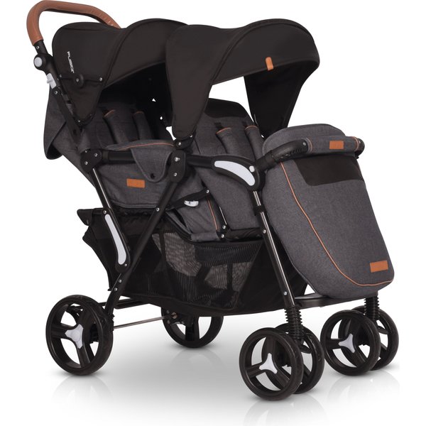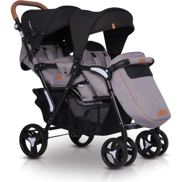 Pomimo tego, że jest to wózek bliźniaczy, składa się on do kompaktowych wymiarów, które zdecydowanie wpłynie na jakość podróżowania z nim. To z pewnością duża zaleta dla rodziców, którzy kochają podróże. Dodatkowe elementy dołączone do zestawu pozwolą spacerować niezależnie od warunków pogodowych, a są to: pokrowiec na nóżki i folia przeciwdeszczowa.
