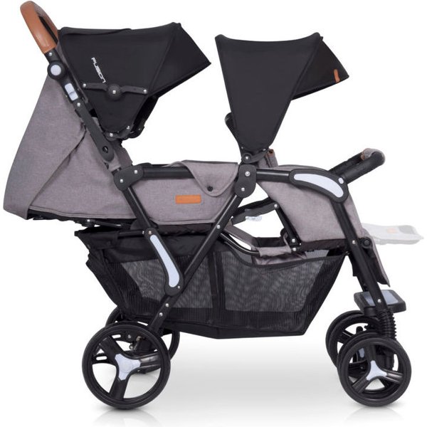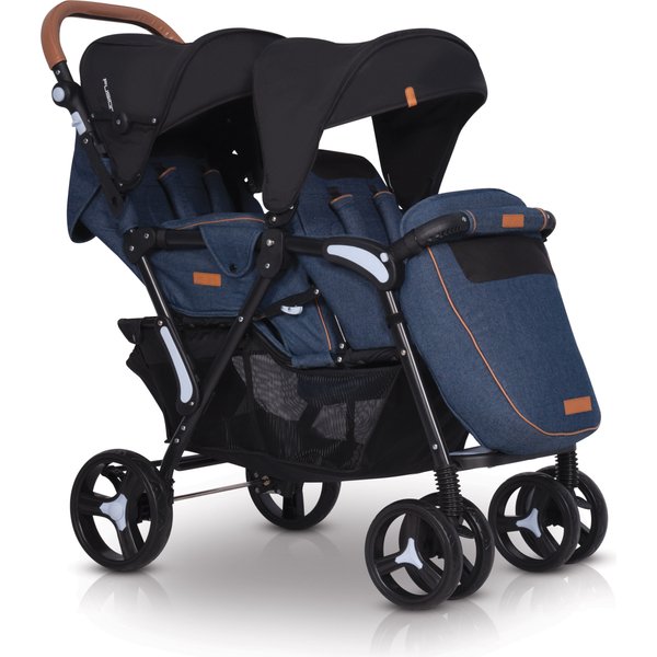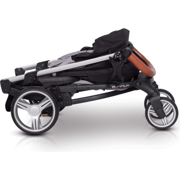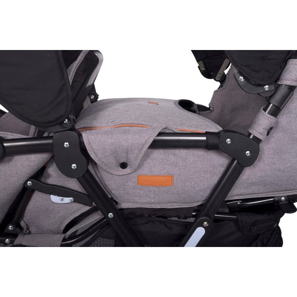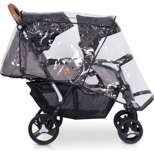 Pomimo tego, że jest to wózek bliźniaczy, składa się on do kompaktowych wymiarów, które zdecydowanie wpłynie na jakość podróżowania z nim. To z pewnością duża zaleta dla rodziców, którzy kochają podróże. Dodatkowe elementy dołączone do zestawu pozwolą spacerować niezależnie od warunków pogodowych, a są to: pokrowiec na nóżki i folia przeciwdeszczowa.