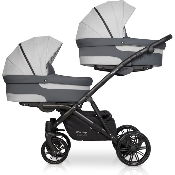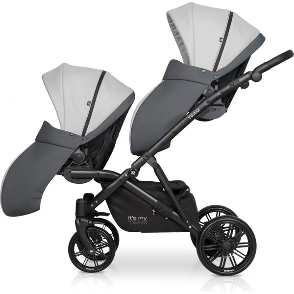 Wielofunkcyjny wózek bliźniaczy Team od Riko, który umożliwi nie tylko spacerowanie z bliźniakami, ale również z dziećmi rok po roku. Pozwoli nam na to możliwość dowolnej konfiguracji gondoli czy siedziska spacerowego. Istnieje również możliwość zamontowania fotelików samochodowych (do zakupienia osobno). Dzięki budowie typu tandem nie będzie problemu ze zmieszczeniem się w drzwiach.