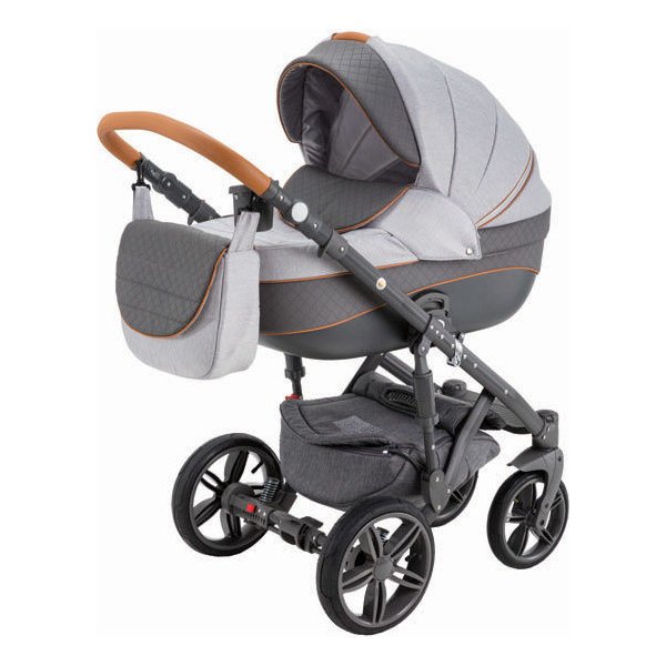Wszystko po to, aby komfort prowadzenia był odczuwalny w stopniu maksymalnym. Zastosowany unikatowy podwójny amortyzator w pompowanych już kołach umożliwi Ci łatwe pokonywanie trudniejszych nawierzchni oraz krawężników. Dodatkowym atutem podczas prowadzenia wózka są skrętne koła przednie, które ułatwiają manewrowanie oraz płynność podczas jazdy. Stworzony z myślą o bezpieczeństwie i komforcie dziecka posiada bardzo stabilną oraz niezwykle wygodną gondolę, która daje Ci możliwość dowolnego wpięcia zarówno tak, by dziecko było ułożone przodem do kierunku jazdy, jak i twarzą do Ciebie. Budka gondoli oraz spacerówki posiada dodatkową wentylację oraz otwierany daszek, który chroni maluszka przed niebezpiecznymi promieniami słonecznymi. Dodatkowe akcesoria dołączone do modelu zostały umieszczone w pakowną i stylową torbę. Dzięki tym akcesoriom Twój spacer stanie się o niebo przyjemniejszy. Możliwość złożenia pozwoli Ci z łatwością przechować wózek w małym mieszkaniu oraz przewieźć w bagażniku, natomiast zastosowana aluminiowa rama jest niezwykle lekka, a przy tym wytrzymała.