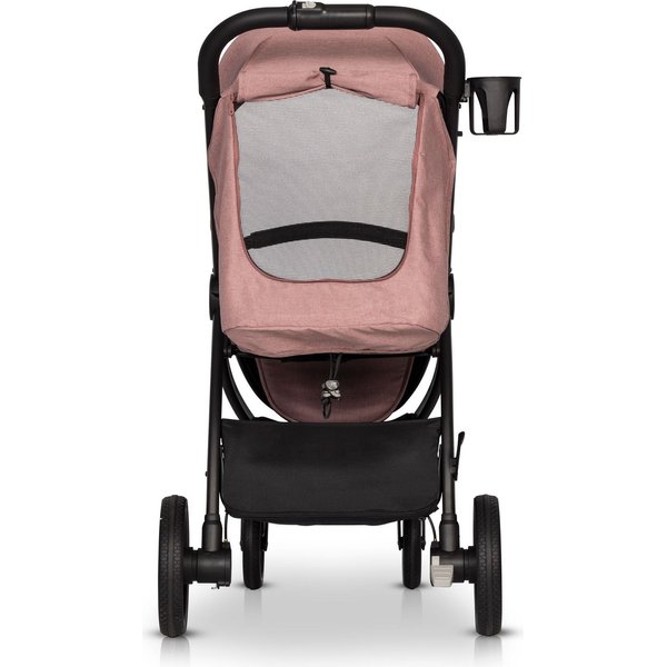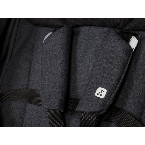 Dla większej wygody istnieje możliwość rozłożenia oparcia do pozycji leżącej, która pozwoli dziecku na spokojną drzemkę. Dla najmłodszych obecna jest również miękka poduszka, którą można zapiąć do oparcia. Siedzisko wyposażone zostało w 5 punktowe pasy, posiadające dodatkową regulację wysokości. Duże, łożyskowane koła z gumowymi oponami zapewnią płynną i lekką jazdę, niezależnie od warunków nawierzchni. Dodatkowo na jakość prowadzenia wpłyną również amortyzatory na wszystkich kołach. Do zestawu dołączone zostało przykrycie na nóżki oraz folia przeciwdeszczowa z wentylacją.