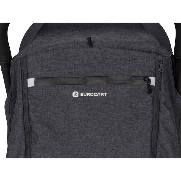 Wózek można bez problemu złożyć do kompaktowych wymiarów, co ułatwia jego przenoszenie czy transport.Wysokiej jakości tkaniny są odporne na przetarcia czy zabrudzenia. Prowadnica wózka znajduje się na wysokości 103 cm od ziemi, dzięki czemu będzie wygodny do prowadzenia dla wysokich osób i nie będą one haczyły o tylne zawieszenie. Dodatkowym elementem zwiększającym bezpieczeństwo są odblaski, które zwiększą widoczność po zmroku.