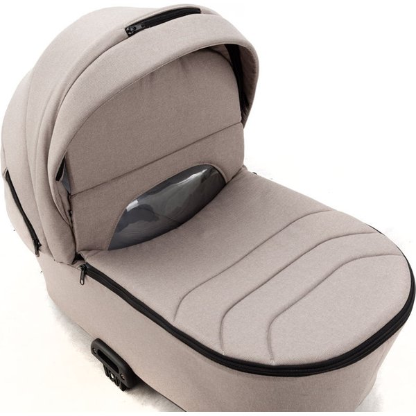 Komfortowa gondola jest składana na płasko i posiada materacyk z możliwością zdjęcia tapicerki do prania, dzięki czemu łatwiej zadbasz o czystość. Wydajny system wentylacji (w daszku i dnie gondoli) nie dopuści do tego, aby maluszek się przegrzał nawet w bardzo upalny dzień, kiedy musisz osłonić go przed słońcem za pomocą daszku. Z pewnością docenisz także bezobsługowe koła z pianki poliuretanowej oraz podwójny system amortyzacji, który umożliwi przyjemną jazdę nawet na wertepach.