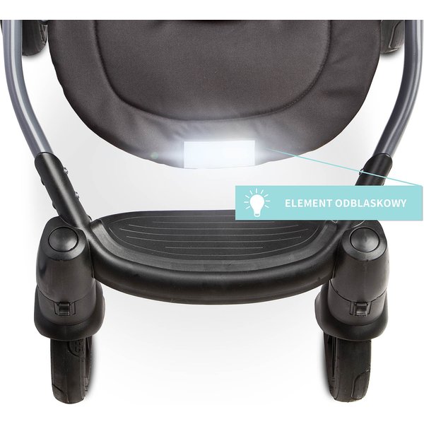 - Możliwość dokupienia dedykowanych akcesoriów zapewnia jeszcze praktyczniejsze rozwiązania: śpiworek na zimę, letni pokrowiec na fotelik, pelerynka przeciwdeszczowa oraz moskitiera,