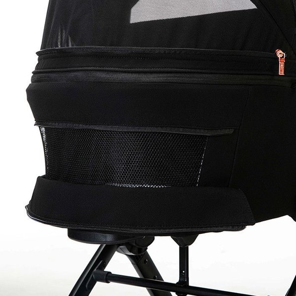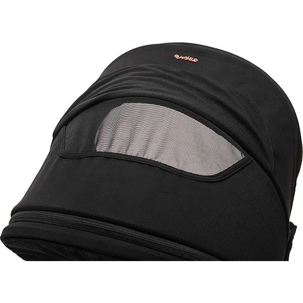 Praktyczna gondola charakteryzuje się niską wagą (zaledwie 3,9 kg) i obszernym wnętrzem z wypinaną wyściółką, idealnym do drzemki. W środku znajduje się miękki materacyk, wspierający kręgosłup maluszka. Podwójny system wentylacji gondoli (panoramiczne okno wentylacyjne w gondoli i budce gondoli) przyda się w czasie upalnych dni, zaś pokrowiec na nóżki wykorzystasz w czasie niesprzyjającej pogody. Jest on zapinany na magnetyczne klipsy i zamek błyskawiczny. Budka gondoli została wyposażona w dodatkowy daszek oraz wbudowaną moskitierę. Jeśli jesteś wysoki, to docenisz także specjalne adaptery podwyższające gondolę.