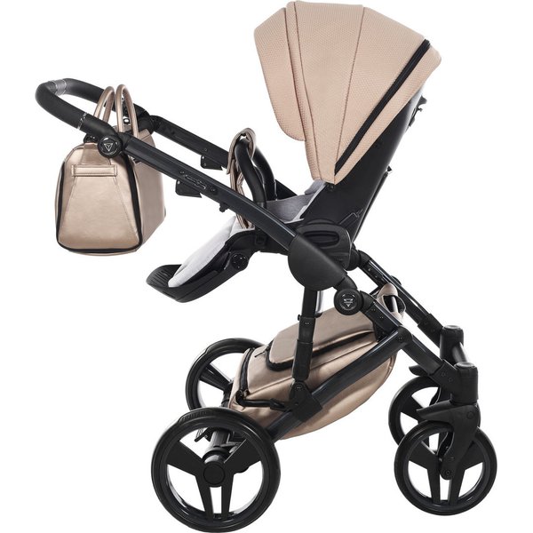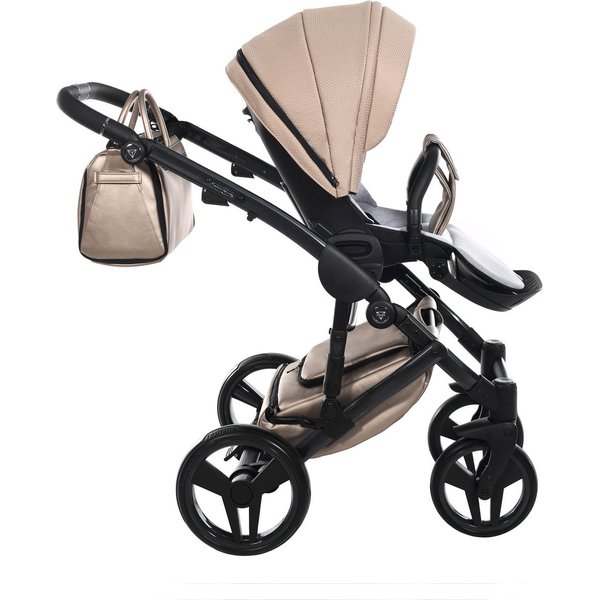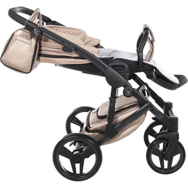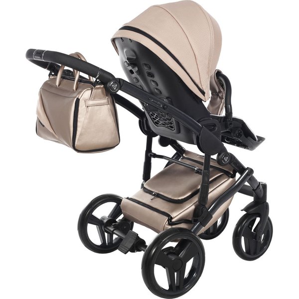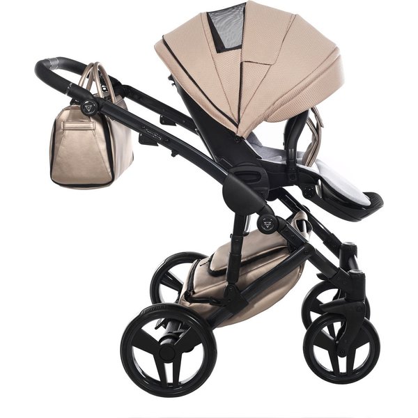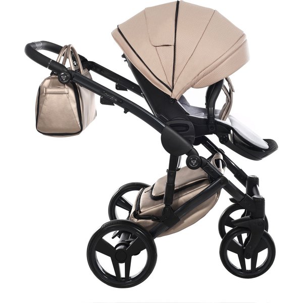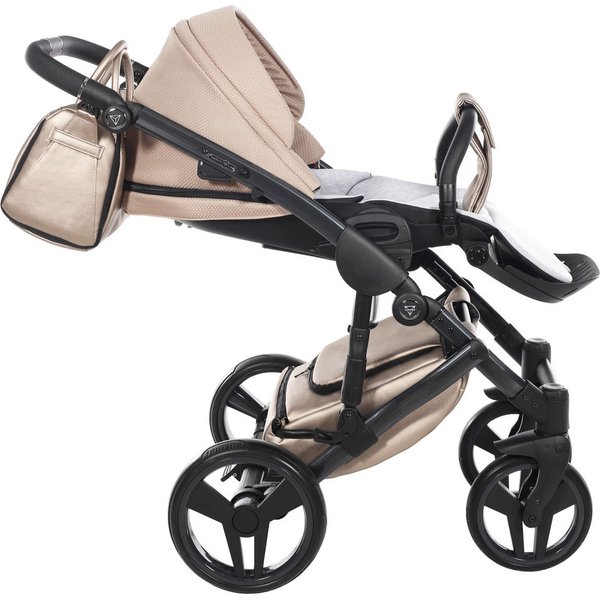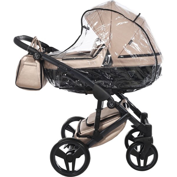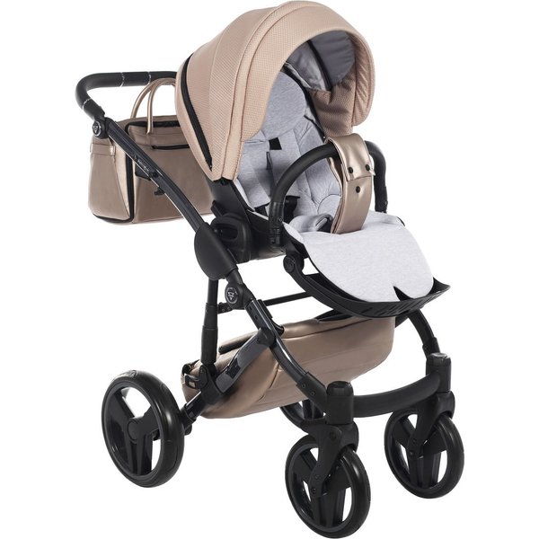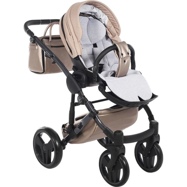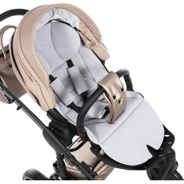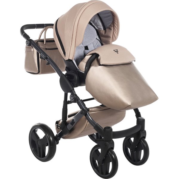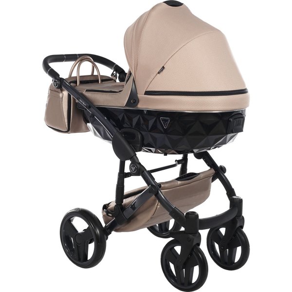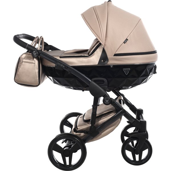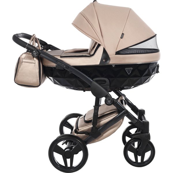 Uwagę zwraca niezwykły design, przywodzący na myśl klejnoty. Lekka konstrukcja z najwyższej jakości materiałów, eleganckiej skóry ekologicznej, aluminium, polipropylenu i poliuretanu nie zawiedzie oczekiwań najbardziej wymagających rodziców. Bogaty zestaw akcesoriów dołączonych do wózka (w tym osłonka na nóżki, moskitiera i folia przeciwdeszczowa) pozwoli na uniknięcie kłopotów w trakcie spaceru.