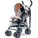 - składana budka chroni przed wiatrem i słońcem, a dodatkowe okienko pozwala na obserwację dziecka