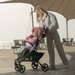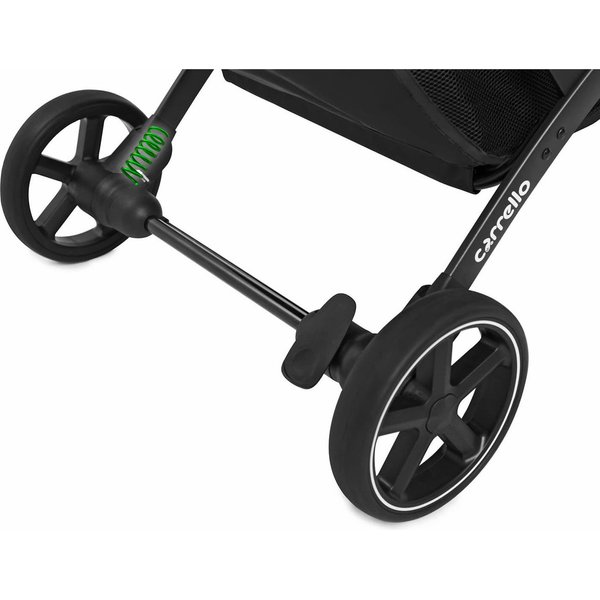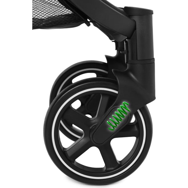 Komfortowa podróż dla maluszka jest gwarantowana przez bezobsługowe koła z pianki EVA wyposażone w amortyzatory, aby żadne nierówności w terenie nie przerywały drzemki. Wózek jest bardzo mobilny i łatwo nim manewrować dzięki obrotowym przednim kołom. Oparcie spacerówki jest regulowane jedną ręką i posiada trzy pozycje, w tym pozycję całkowicie leżącą dla najmłodszych dzieci.