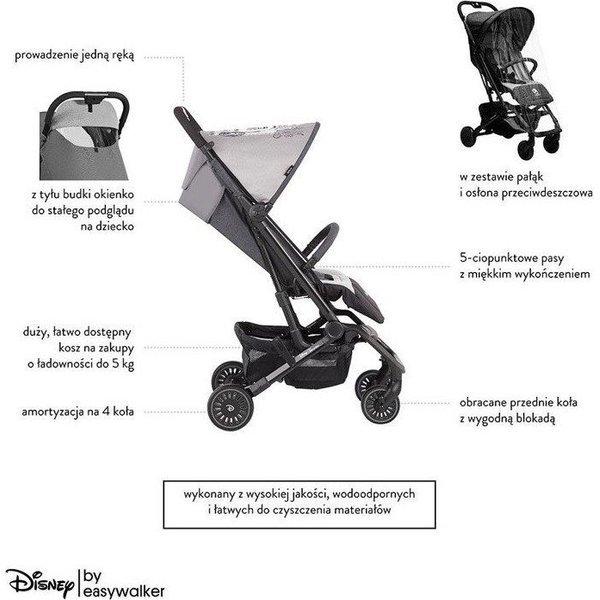 Pokryta miękkim i wygodnym materiałem, a do tego wyprofilowana rączka umożliwia komfortowe prowadzenie wózka, natomiast mocne koła umożliwiają łatwe omijanie przeszkód oraz wysoką amortyzację. Dlatego nie martw się, że jakiekolwiek nierówności mogą zakłócić spokojny sen Twojego maluszka. Co ważne wózek doskonale sprawdzi się już od urodzenia! Dlatego marka zadbała również o to, by daszek, który jest zintegrowany z całością odpowiednio chronił dziecko przed szkodliwymi promieniami słonecznymi. A dodatkowa folia przeciwdeszczowa oraz regulowany podnóżek doskonale sprawdzą się podczas gorszych warunków pogodowych.