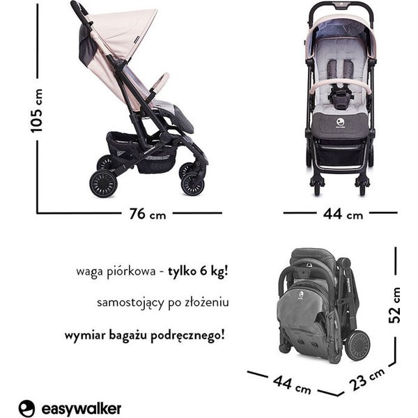 Wózek idealny? Oczywiście Buggy XS marki Easywalker! Niezwykle lekki, ponieważ waży zaledwie 6kg, posiada niesamowitą możliwość złożenia aż do wymiarów bagażu podręcznego! Oznacza to, że możesz go wozić i nosić ze sobą gdzie tylko zapragniesz! Jednak marka Easywalker projektując model, skupiła się na wszystkich najważniejszych i najdrobniejszych detalach tak, by komfort podczas jazdy oraz bezpieczeństwo Twojego dziecka były jak najwyższe, a Ty podczas prowadzenia odczuwał wysoką swobodę.
