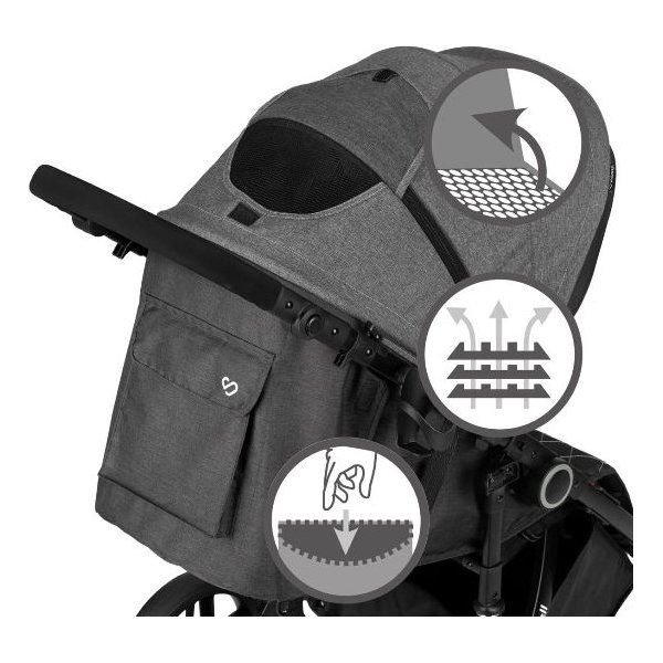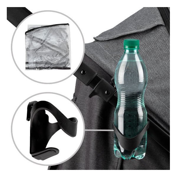 W zestawie znajduje się wiele elementów, które przydadzą się nam w zależności od pory roku. Przed deszczem uchroni nas przeciwdeszczowa folia, a w zimne dni z pewnością przyda nam się śpiworek na nóżki, który ochroni dziecko przed chłodem. Regulowane pasy pozwolą dostosować ich długość zarówno gdy maluch ubrany jest na letnie dni lub w ciepłą kurtkę. Nie możemy zapomnieć o dużym, rozkładanym daszku, który ochroni przed słońcem jak i wiatrem. Okienko w daszku zapewni zaś odpowiednią cyrkulację powietrza dzięki czemu unikniemy przegrzania się dziecka. Dodatkowo wózek posiada uchwyt na kubek, który pozwoli przewozić napój dla rodzica, a duży obszerny kosz pozwoli przechować najpotrzebniejsze rzeczy, które musimy zabrać ze sobą na dłuższy spacer. Płynna regulacja oparcia pozwoli na wygodną drzemkę maluszka podczas wycieczek.