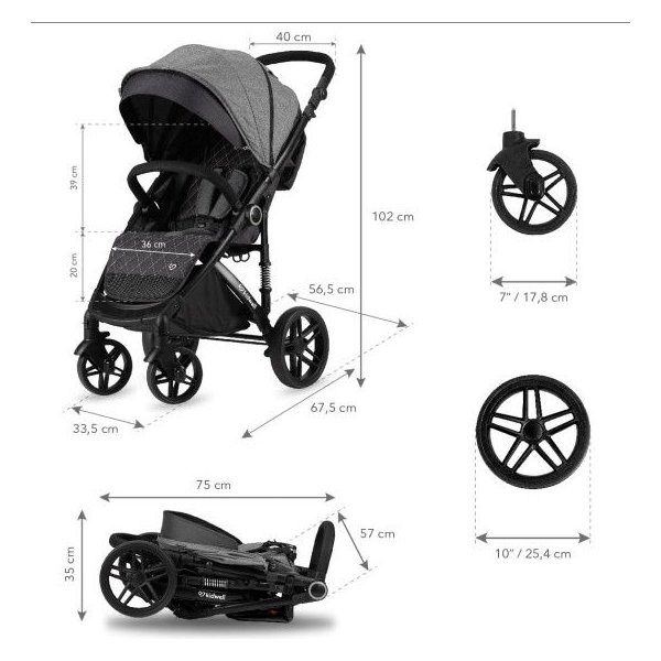 Wózek spacerowy Carell od Kidwell został stworzony tak, aby spacery z maluszkiem były możliwe o każdej porze roku! Nie ważne czy deszcz, słońce czy śnieg! Liczne udogodnienia sprawiają, że żadna pogoda nam nie będzie straszna! Koła z pianki EVA bez konieczności pompowania zapewnią nam płynną jazdę niezależnie od rodzaju nawierzchni. Dodatkowo wyposażone zostały w blokadę skrętu, aby dostosować je do wymagań. Stalowa i wytrzymała rama sprawi, że wózek pozostanie z nami przez dłuższy okres czasu.