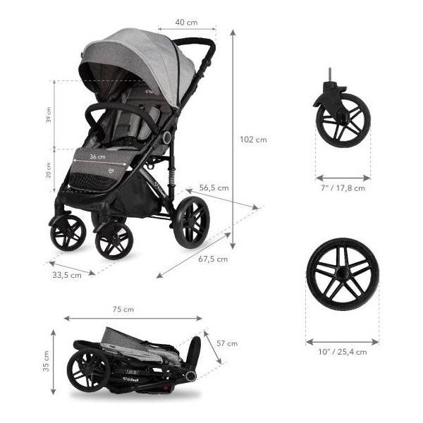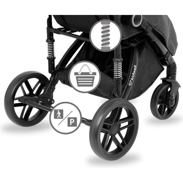 Wózek spacerowy Carell od Kidwell został stworzony tak, aby spacery z maluszkiem były możliwe o każdej porze roku! Nie ważne czy deszcz, słońce czy śnieg! Liczne udogodnienia sprawiają, że żadna pogoda nam nie będzie straszna! Koła z pianki EVA bez konieczności pompowania zapewnią nam płynną jazdę niezależnie od rodzaju nawierzchni. Dodatkowo wyposażone zostały w blokadę skrętu, aby dostosować je do wymagań. Stalowa i wytrzymała rama sprawi, że wózek pozostanie z nami przez dłuższy okres czasu.