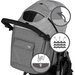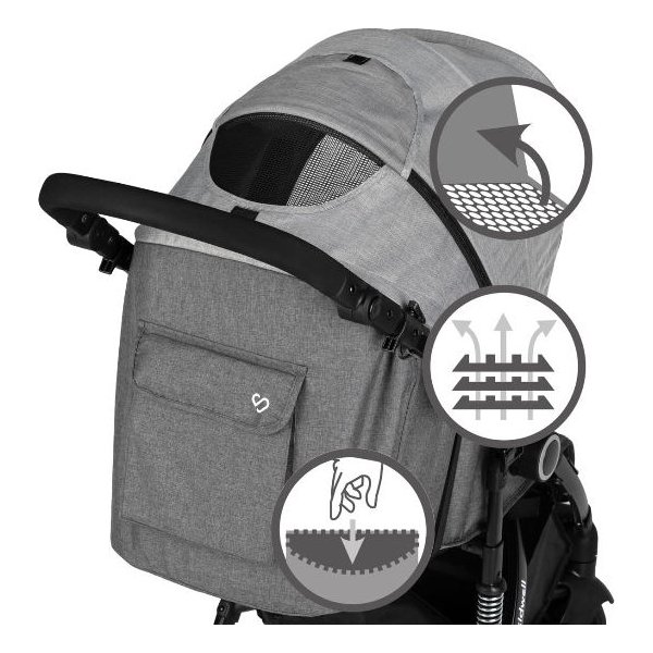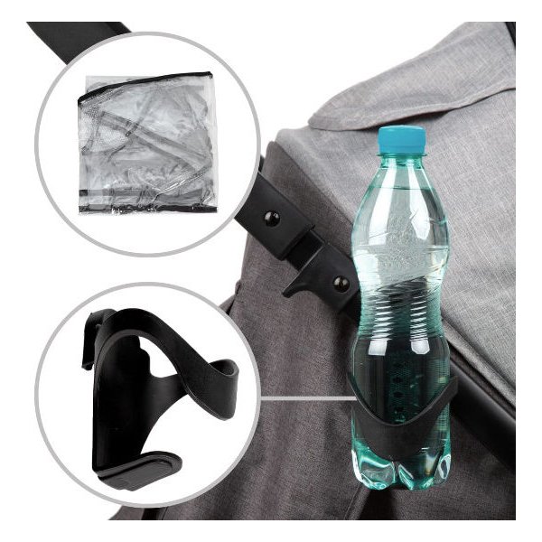 W zestawie znajduje się wiele elementów, które przydadzą się nam w zależności od pory roku. Przed deszczem uchroni nas przeciwdeszczowa folia, a w zimne dni z pewnością przyda nam się śpiworek na nóżki, który ochroni dziecko przed chłodem. Regulowane pasy pozwolą dostosować ich długość zarówno gdy maluch ubrany jest na letnie dni lub w ciepłą kurtkę. Nie możemy zapomnieć o dużym, rozkładanym daszku, który ochroni przed słońcem jak i wiatrem. Okienko w daszku zapewni zaś odpowiednią cyrkulację powietrza dzięki czemu unikniemy przegrzania się dziecka. Dodatkowo wózek posiada uchwyt na kubek, który pozwoli przewozić napój dla rodzica, a duży obszerny kosz pozwoli przechować najpotrzebniejsze rzeczy, które musimy zabrać ze sobą na dłuższy spacer. Płynna regulacja oparcia pozwoli na wygodną drzemkę maluszka podczas wycieczek.
