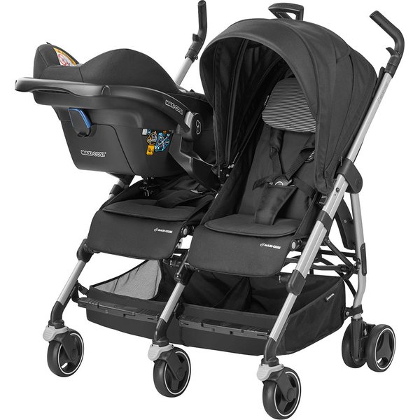Istnieje również możliwość zamontowania dwóch fotelików naraz grupy 0+ Maxi-Cosi: Pebble, Pebble Plus Cabrio Fix, Citi, które pozwolą na użytkowanie wózka od pierwszych chwil życia dziecka! Wystarczy dokupić foteliki i zamontować je na ramie wózka. Wówczas bez problemu maluszka można zabrać w podróż samochodem w foteliku i w razie potrzeby zamontować fotelik na ramie wózka nie budząc przy tym śpiącego maluszka.
