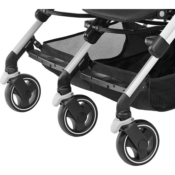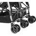 Wózek mimo dwóch siedzeń jest przede wszystkim lekki i zwrotny, dzięki czemu łatwo się prowadzi. Dzięki podwójnym tylnym kołom z amortyzacją jazda jest płynna i przyjemna. Dodatkowo skrętne przednie koła można zablokować, co ułatwi pokonanie trudniejszego terenu.