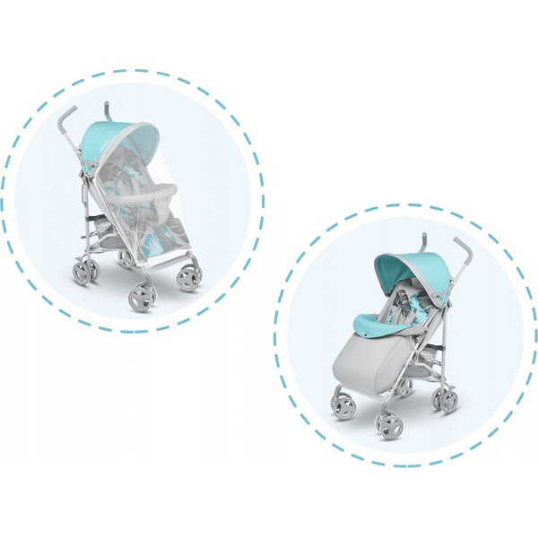 Wózek wykonano z trwałej tkaniny, odpornej na przetarcia. Koła wykonane z pianki Eva gwarantują wygodę, a amortyzacja na tylne koła pozwala na płynną jazdę nawet po nie równym terenie. Pojemny kosz pomieści wszystkie potrzebne akcesoria. Wózek posiada certyfikaty potwierdzające wysoką jakość oraz bezpieczeństwo (Intertek, EN 1888:2012) Wyposażony został w akcesoria takie jak: ocieplacz na nóżki, folię przeciwdeszczową oraz moskitierę.