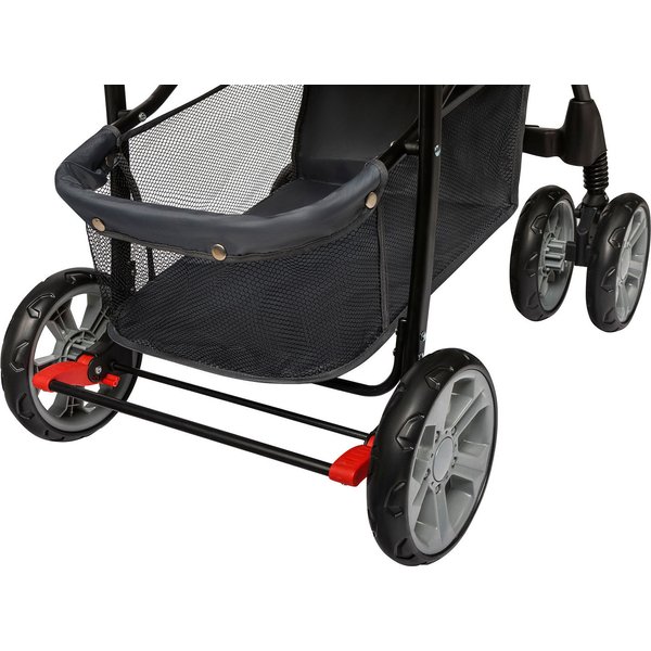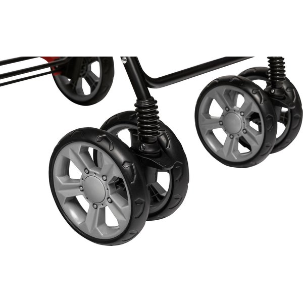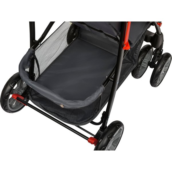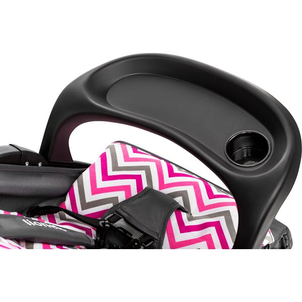 Wózek wykonano z trwałej tkaniny, odpornej na przetarcia. Koła wykonane z pianki Eva gwarantują wygodę, a amortyzacja na tylne koła pozwala na płynną jazdę nawet po nie równym terenie. Pojemny kosz pomieści wszystkie potrzebne akcesoria. Wózek posiada certyfikaty potwierdzające wysoką jakość oraz bezpieczeństwo (Intertek, EN 1888:2012). Praktyczna torba pomieści najpotrzebniejsze drobiazgi.