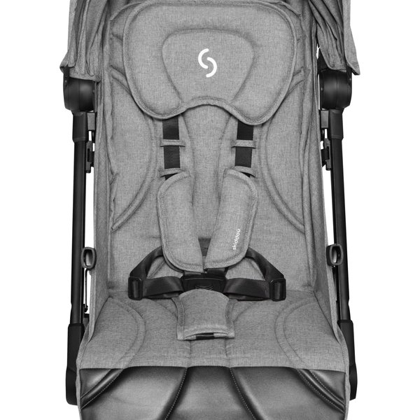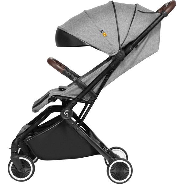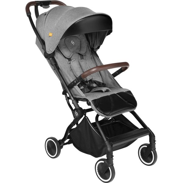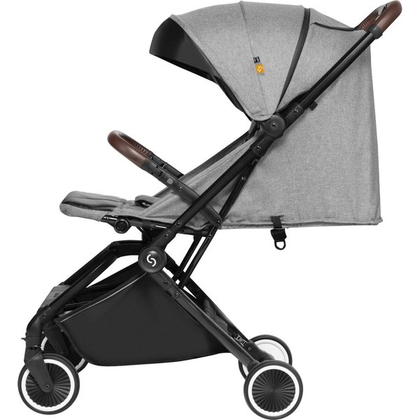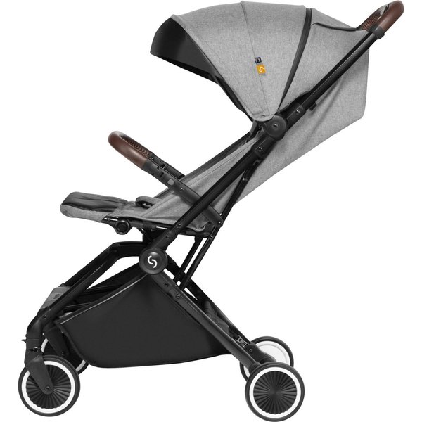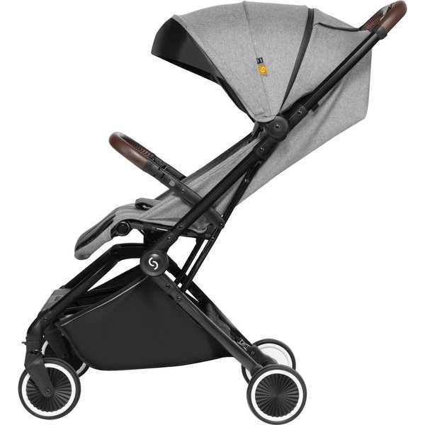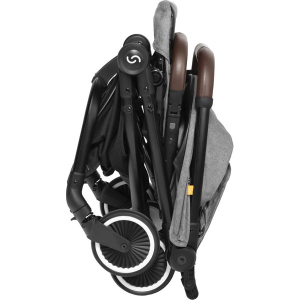 Wózek ma lekką, aluminiową konstrukcję, a dzięki kompaktowym rozmiarom po złożeniu z łatwością zmieści się nawet w mniejszym aucie i samolocie. System automatycznego składania pozwala na szybkie złożenie wózka jedną ręką.