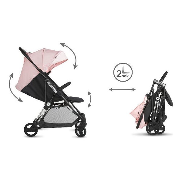 Spacerówka posiada również pojemny kosz, który można wykorzystać podczas zakupów. Tylna ścianka została wyposażona w okienko z siateczką, które zapewni odpowiednią wentylację podczas spacerów w upalne dni, a przy okazji pozwala na podglądanie maluszka. Kółka z pianki zapewnią lekkie i komfortowe prowadzenie spacerówki bez względu na rodzaj nawierzchni.