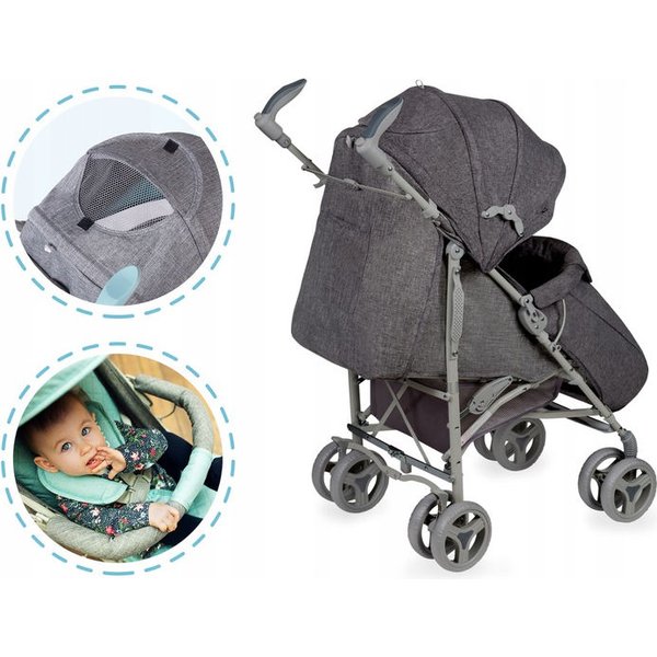 Bezstopniowa regulacja oparcia nawet do pozycji leżącej pomoże maluchowi w popołudniowej drzemce. Wózek posiada również podwójną blokadę przed złożeniem co stanowi dodatkową ochronę. Umieszczony pod siedziskiem pojemny kosz pomieści wszystkie potrzebne akcesoria, czy małe zakupy.