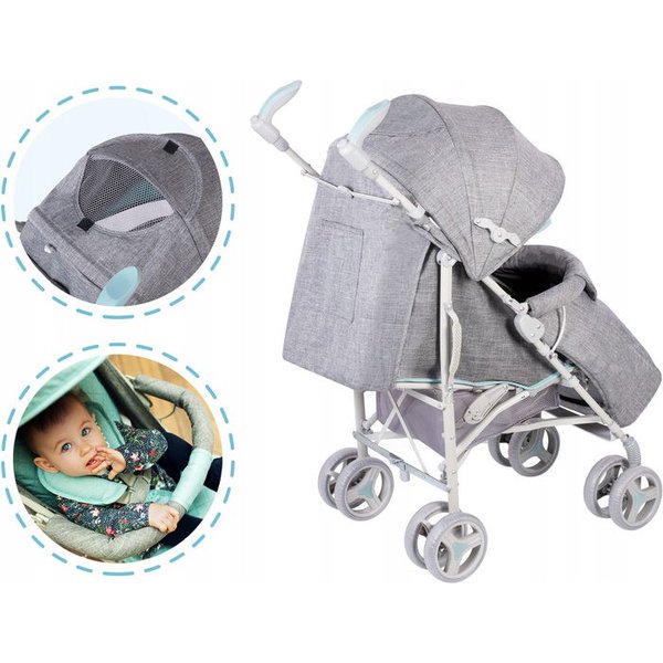 Bezstopniowa regulacja oparcia nawet do pozycji leżącej pomoże maluchowi w popołudniowej drzemce. Wózek posiada również podwójną blokadę przed złożeniem co stanowi dodatkową ochronę. Umieszczony pod siedziskiem pojemny kosz pomieści wszystkie potrzebne akcesoria, czy małe zakupy.