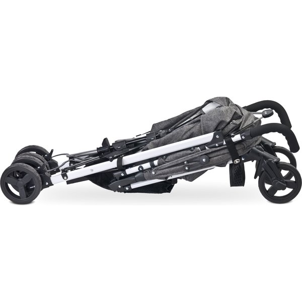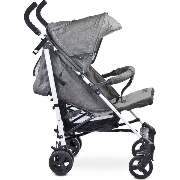 Model Jeans posiada wiele praktycznych funkcji, które ułatwią rodzicom podróż z dzieckiem. Dodatkowo biała rama oraz tapicerka wyglądem przypominająca jeans nadają spacerówce oryginalny design!