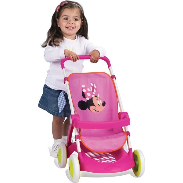 Teraz każda księżniczka może zabrać swoją ukochaną lalkę na spacer i poczuć się jak prawdziwa mama. Wózek jest lekki i stabilny, stelaż wykonano zarówno z elementów metalowych, jak i plastikowych. Posiada materiałowe siedzisko z wizerunkiem Myszki Minnie, barierkę zabezpieczającą przed wypadnięciem, a także półkę na akcesoria pod siedziskiem.