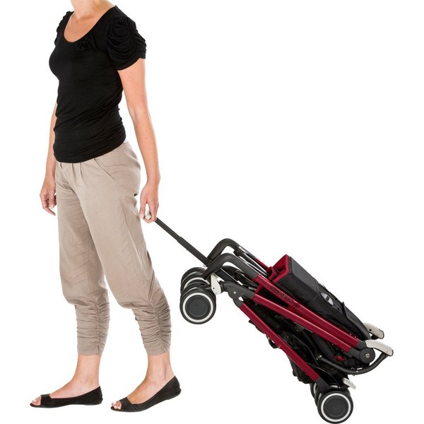 Wózek składa się do bardzo małych rozmiarów wraz z siedziskiem. Dodatkowo posiada uchwyt do ciągnięcia, co ułatwia jego transport.