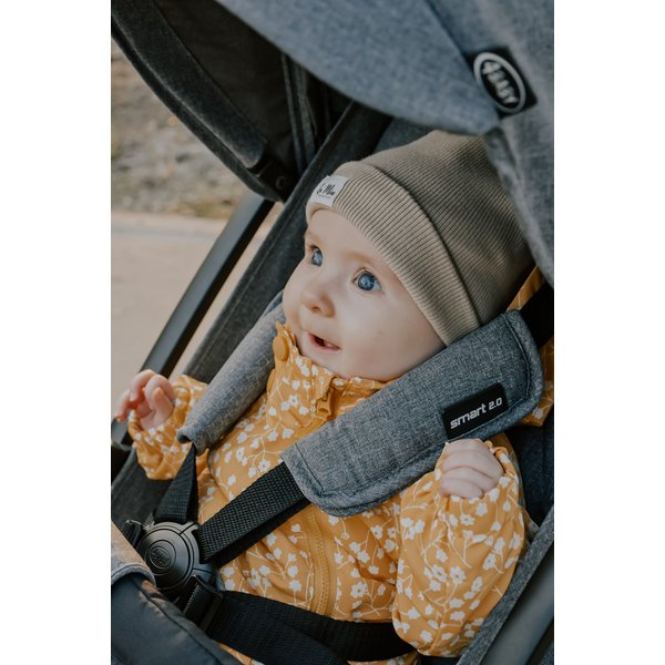 Model Smart 2.0 pozwala na rozłożenie oparcia do pozycji leżącej, a dzięki specjalnemu okienku, rodzic zawsze może mieć maluszka na oku. Dodatkowo komfortu podczas drzemki doda regulowany podnóżek. Szeroka budka z możliwością rozłożenia ochroni przed nieprzyjemnymi warunkami atmosferycznymi. Możemy, więc spacerować niezależnie od pogody. W chłodne dni maluszka ochroni osłona na nogi. Dla bezpieczeństwa obecne są 5punktowe pasy oraz barierka ochronna, które doskonale ochronią przed wypadnięciem z wózka. Piankowe, amortyzowane i zwrotne koła pozwolą na płynną jazdę po różnej nawierzchni.
