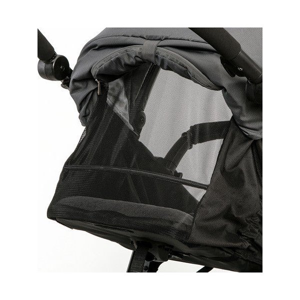 Duża budka zasłaniająca niemal całe dziecko. Hamulec pod ręką. Szybkie i łatwe składanie i rozkładanie oparcia.