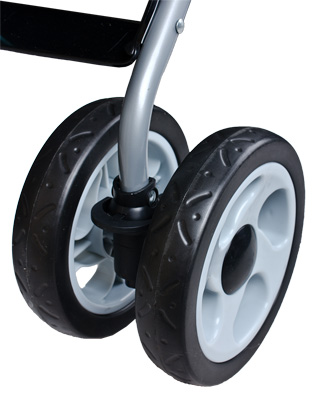 • skrętne przednie koła z opcją zablokowania, dla łatwiejszej jazdy po trudnych nawierzchniach