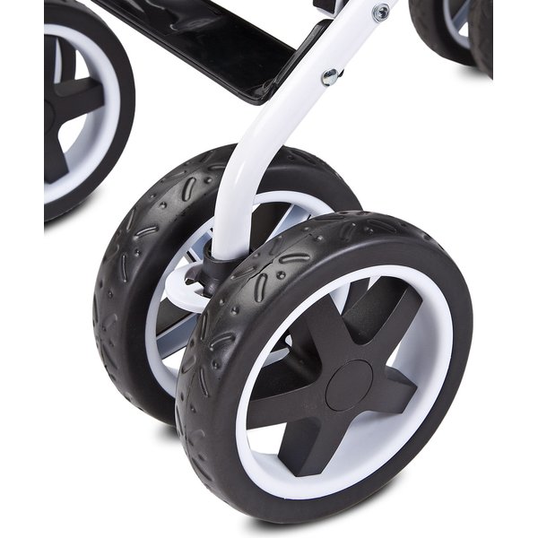 - skrętne przednie koła z opcją zablokowania, dla łatwiejszej jazdy po trudnych nawierzchniach