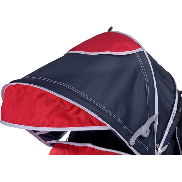 - powiększana budka z daszkiem chroni przed wiatrem i słońcem, a dodatkowe, dwa okienka pozwala na obserwację dziecka