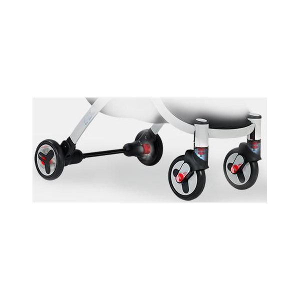 Za komfort jazdy odpowiada zintegrowane zawieszenie na 4 koła i 12 łożysk kulkowych, które to zdecydowanie ułatwia manewrowanie wózkiem.