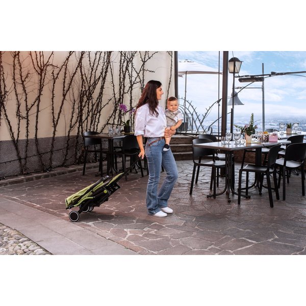 Wózek ten składa się jedną ręką do kompaktowych wymiarów, a po złożeniu kilkoma ruchami przekształcimy ją w walizkę na kółkach, co zdecydowanie ułatwi jej transport. Posiada wygodne, szerokie siedzisko, które zapewni maluszkowi największy komfort podczas długich spacerów. 5 punktowe pasy posiadają specjalne nakładki, które zapobiegną podrażnieniom delikatnej skóry dziecka. Oparcie może być regulowane w wielu pozycjach co pozwoli dopasować jego ułożenie do wymagań małego użytkownika. Spacerówka wyposażona została w obszerną budkę chroniącą przed niekorzystnymi warunkami atmosferycznymi, a okienko w niej pozwoli mieć dziecko zawsze na oku. Obecny pałąk rozpinany jest w centralnej części co ułatwia wsadzanie i wyciąganie maluszka z wózka.