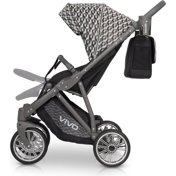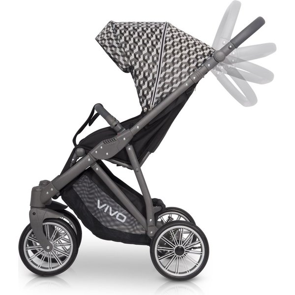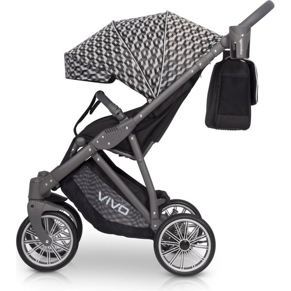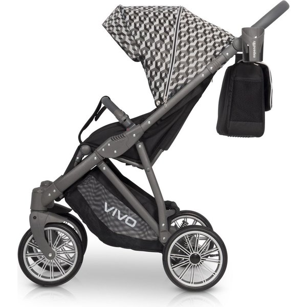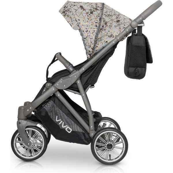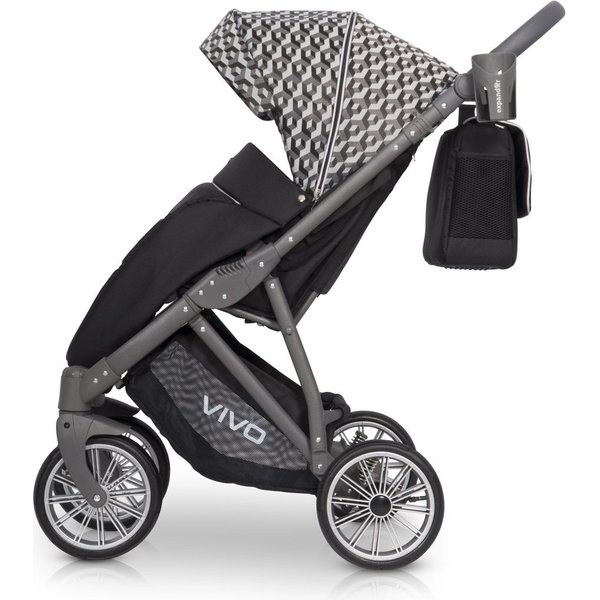 Wózek Vivo jest wygodny, funkcjonalny oraz posiada nowoczesny design co czyni go wyjątkowym. Posiada 5-punktowe pasy bezpieczeństwa, które zabezpieczają malucha w wygodnym siedzisku. Wytrzymała rama zapewnia stabilność wózka. Duże koła bezdętkowe z poliuretanu wyprodukowane przez producenta z branży Automotive zapewniają wygodne przenoszenie się z miejsca na miejsce, a amortyzatory absorbują wstrząsy i pozwalają zachować płynność jazdy nawet po nierównym terenie.