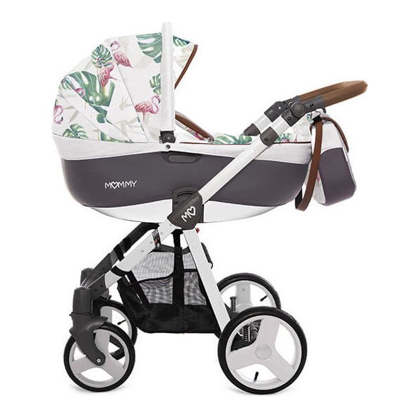 Model Mommy wyposażony został w regulację wysokości prowadnicy. Duży kosz pozwoli na zabranie ze sobą najpotrzebniejszych rzeczy lub zrobienie szybkich zakupów. Cztery żelowe koła z systemem amortyzacji, który umożliwia ustawienie jej poziomu na soft lub hardsprawia, że spacery stają się lekkie i przyjemne, niezależnie od powierzchni na której się poruszamy. Wózek posiada również centralny hamulec, który pozwoli zatrzymać koła w chwili gdy tego potrzebujemy.